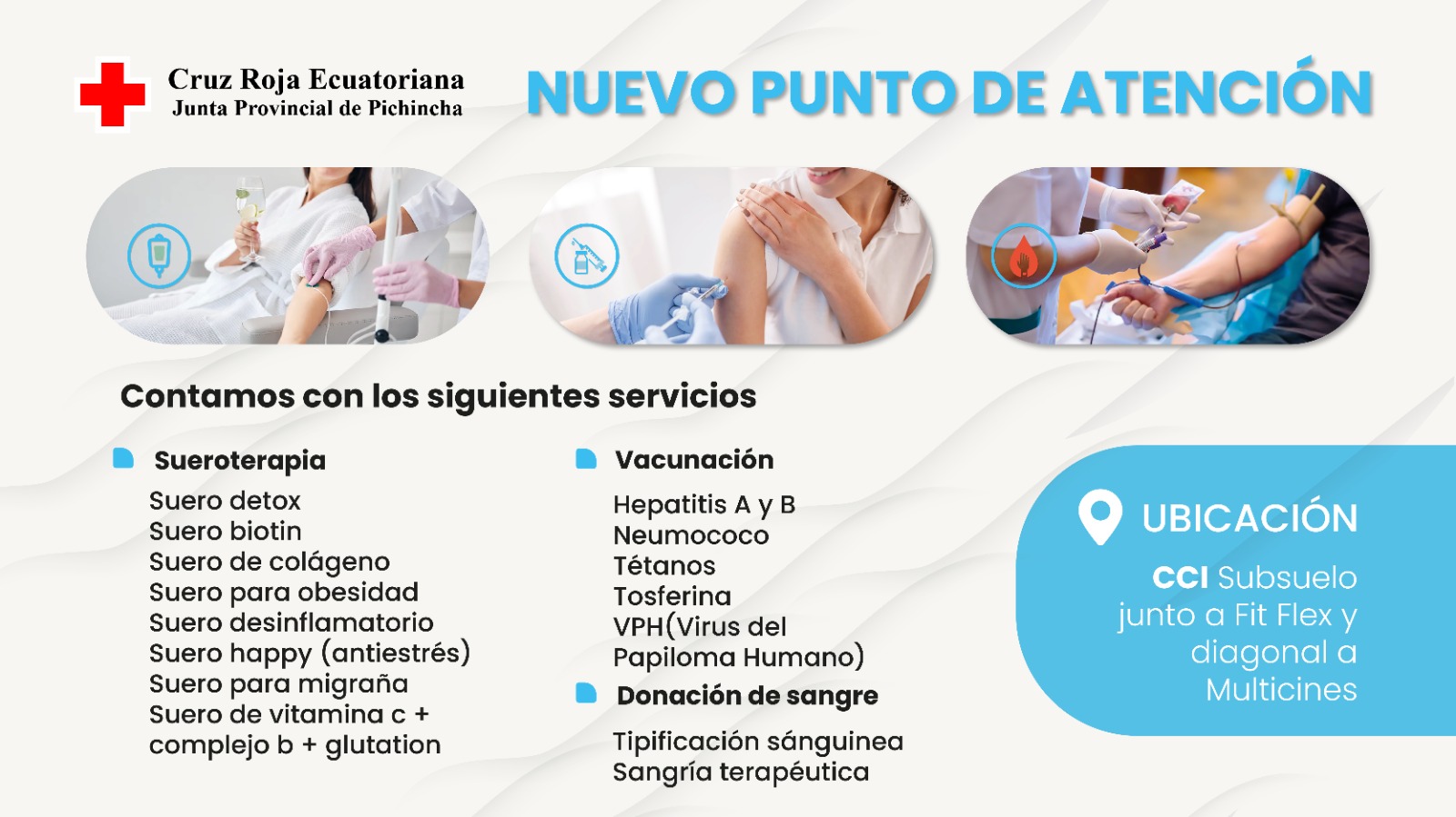 El Centro Comercial Iñaquito (CCI) ofrece la combinación perfecta entre compras y diversión. Entre sus 164 establecimientos comerciales se puede encontrar tiendas de ropa con las últimas tendencias de moda para hombre y mujer, también tiendas de electrodomésticos con la mejor tecnología para el hogar y lugares de entretenimiento como Multicines, El Teatro, Club Gastro CCI y FitnessCCI.