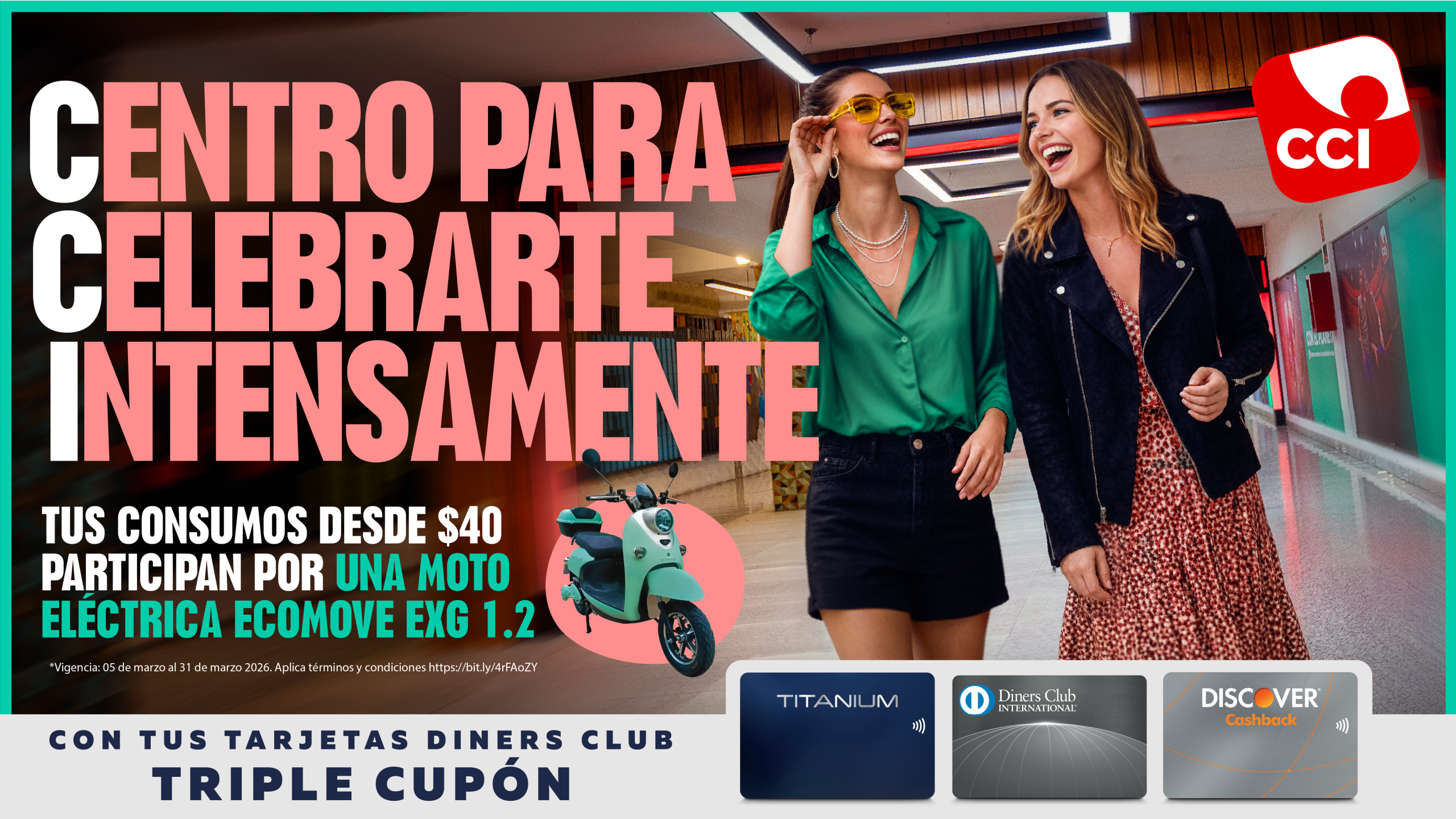 El Centro Comercial Iñaquito (CCI) ofrece la combinación perfecta entre compras y diversión. Entre sus 164 establecimientos comerciales se puede encontrar tiendas de ropa con las últimas tendencias de moda para hombre y mujer, también tiendas de electrodomésticos con la mejor tecnología para el hogar y lugares de entretenimiento como Multicines, El Teatro, Club Gastro CCI y FitnessCCI.